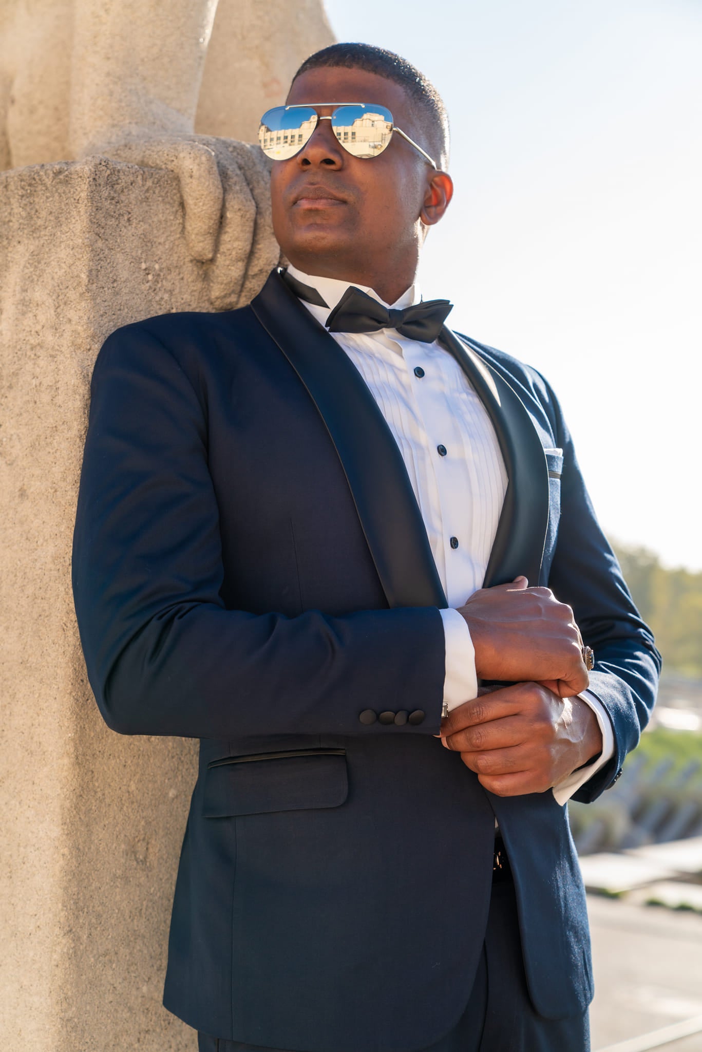 Step into the realm of opulence with the Rajput Regalia - a tuxedo suit that transcends the boundaries of elegance. Crafted from the most exquisite Indian silk, this high-end masterpiece is a symphony of luxury and timelessness. The deep, rich navy hue of the suit, paired with lustrous black lapels and discreet highlights, elevates it to a level of sophistication that is truly exceptional.